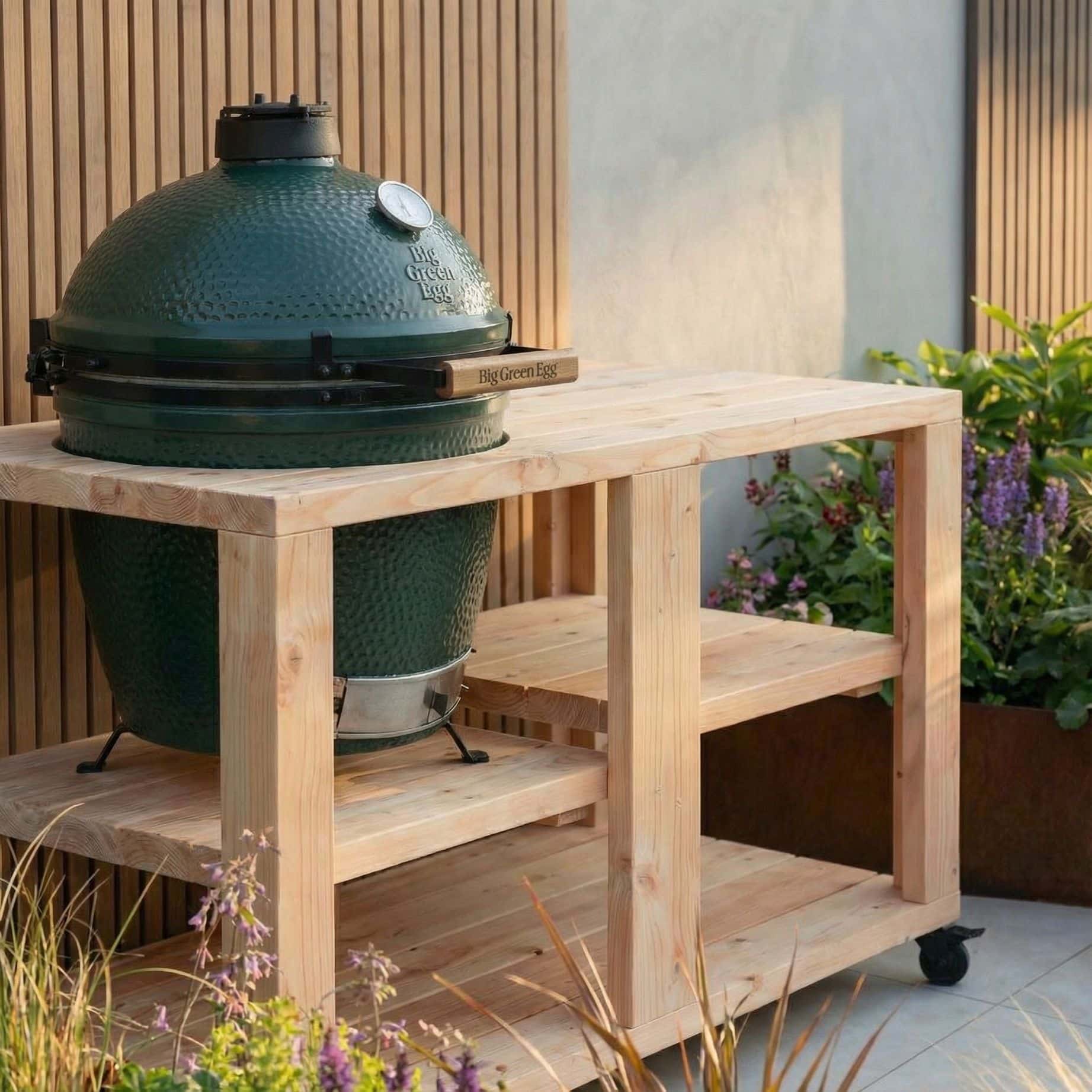 Met de Barbecue Tafel Boston opstelling kan je heerlijk buiten koken met jouw kamado. Creëer meer werkplek, opbergruimte en een passend totaalplaatje. Dit model is door BuitenDuurzaam ontwikkeld om bij de meest gangbare Kamados aan te sluiten! Zoek je een grotere optie? Kies dan voor de het model Chicago.