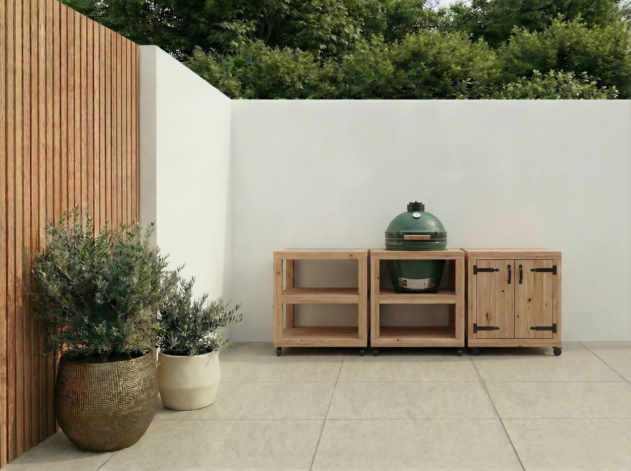 Met de BBQ tafel Denver opstelling kan je heerlijk buiten koken in combinatie met jouw Kamado. Creëer meer werkplek, opbergruimte en een passend totaalplaatje. Dit model is door BuitenDuurzaam ontwikkeld om bij de meest gangbare Kamado’s aan te sluiten! Hierbij zijn de modules zo gemaakt dat ze gecombineerd in alle opstellingen kunnen staan.