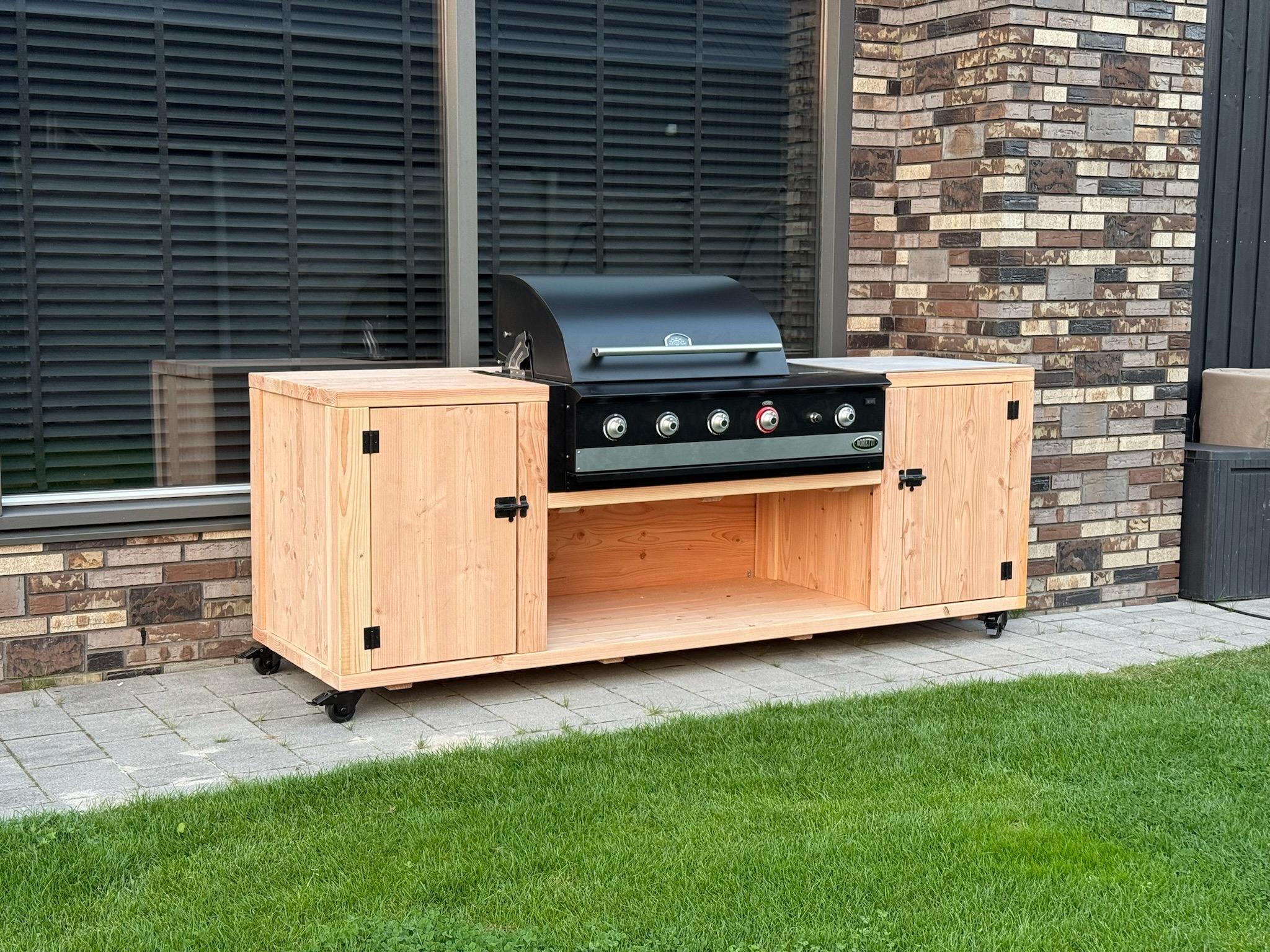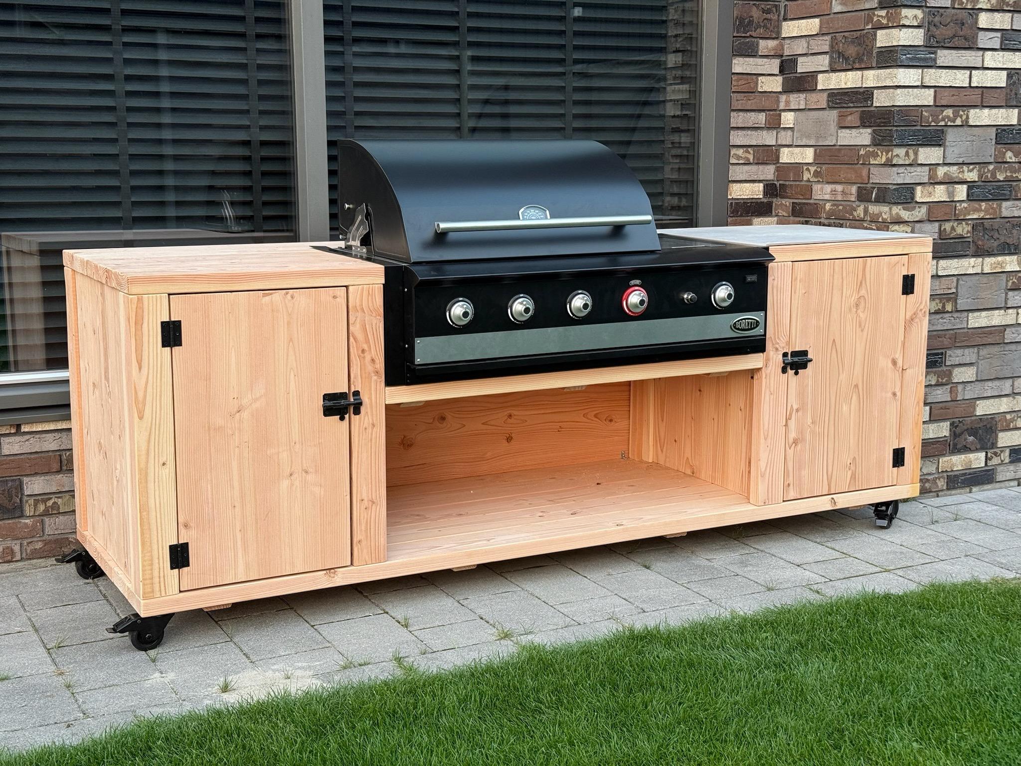 De Barbecue Tafel Torino is door BuitenDuurzaam speciaal ontworpen en geproduceerd voor de populaire Boretti BBQ. Dankzij het modulaire ontwerp stel je de opstelling eenvoudig af op jouw wensen: van werkbladen en uitsparingen tot de keuze voor wanden, deurtjes en tegels.