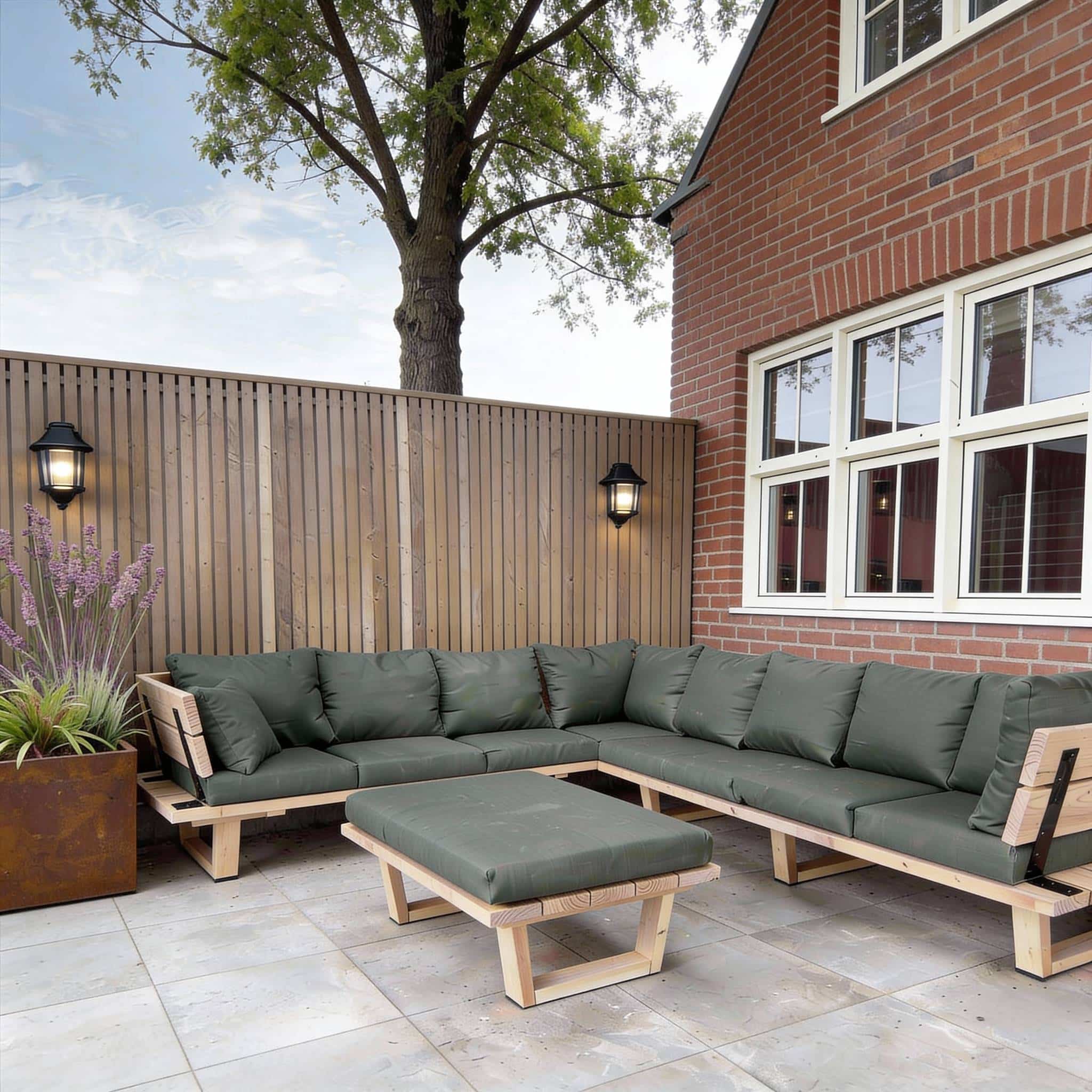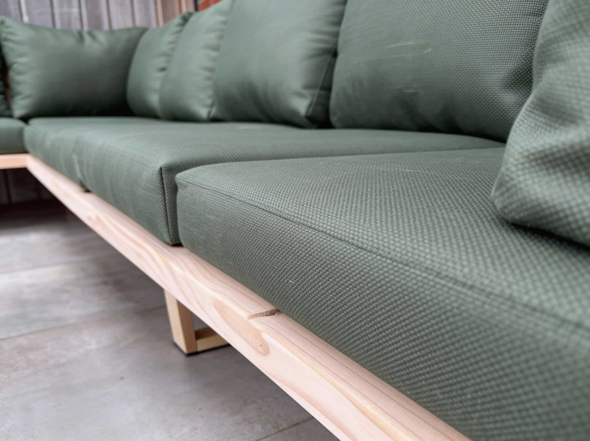 Wat de Loungeset Jade écht onderscheidt, is het volledig houten onderstel én leuningen op de hoeken De Douglas houten poten zorgen voor een rustige, natuurlijke uitstraling en geven de loungeset een ambachtelijk karakter. In tegenstelling tot een stalen frame vormt het houten onderstel één geheel met de rest van de set, wat zorgt voor een harmonisch en tijdloos ontwerp.