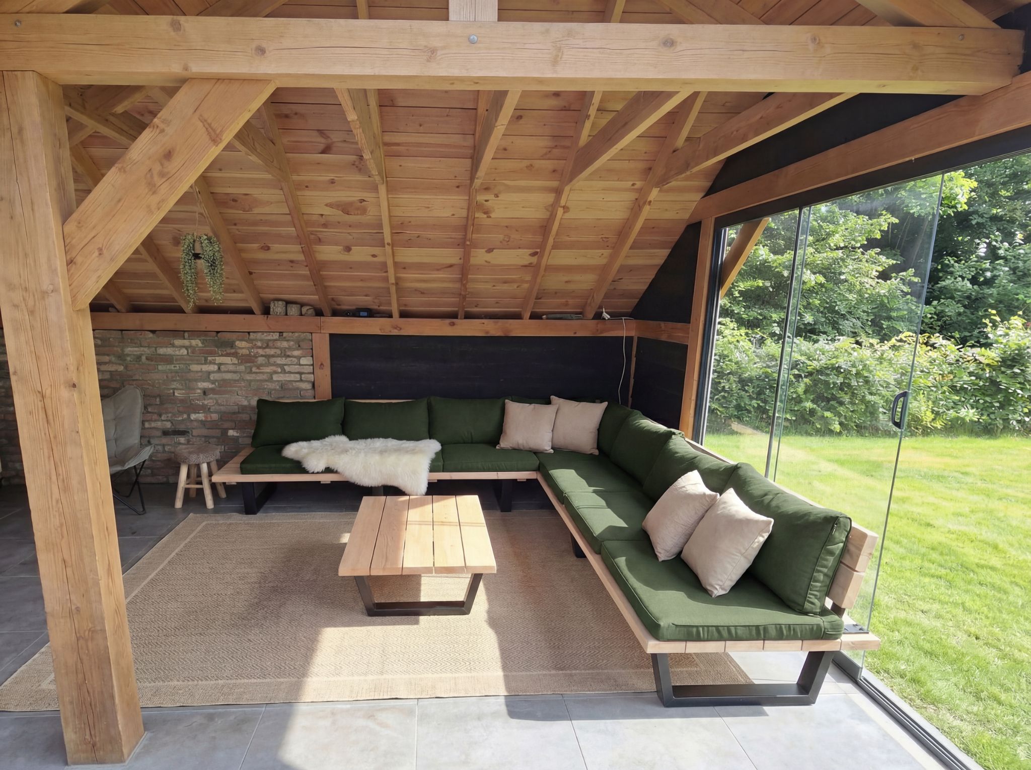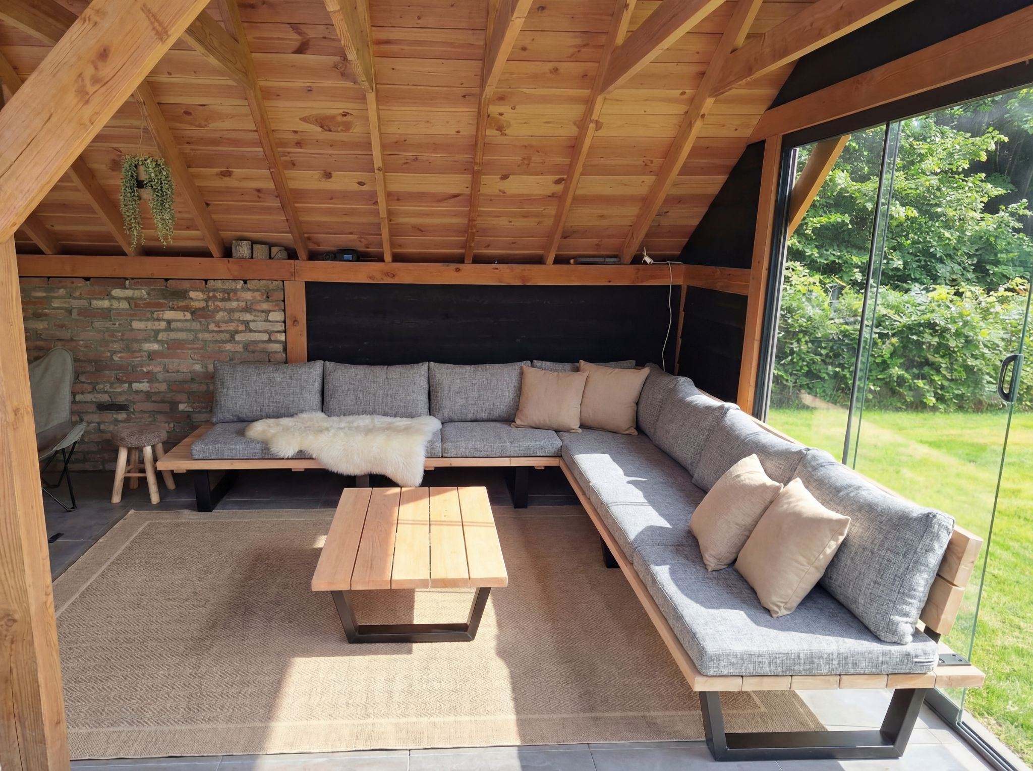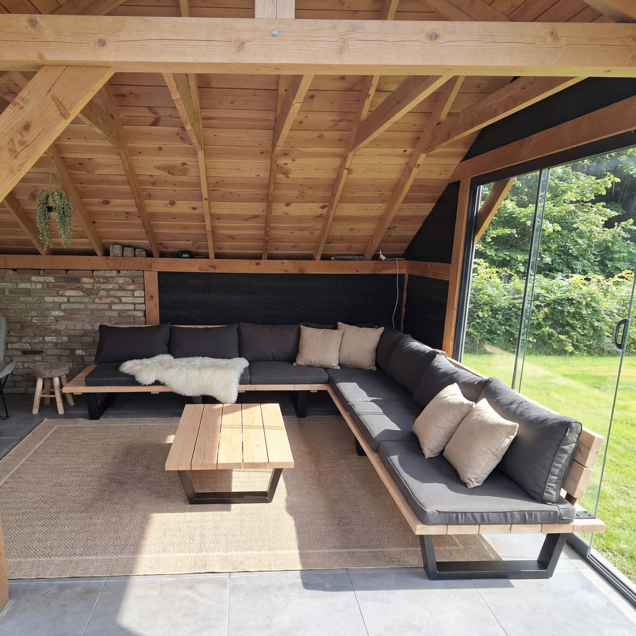 - Zitting en rugleuning: Douglas hout, duurzaamheidsklasse 3