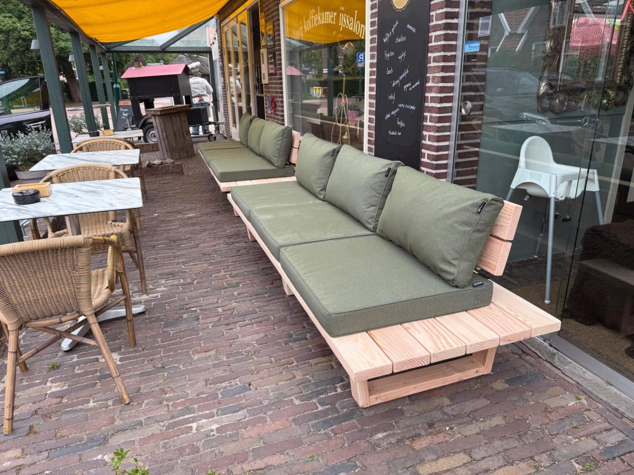 Zie je jouw gewenste maat of opstelling niet staan? Geen probleem. In de meeste gevallen kunnen wij elke gewenste combinatie op maat produceren. Samen met onze vaste stoffeerder verzorgen wij ook maatwerk kussens.