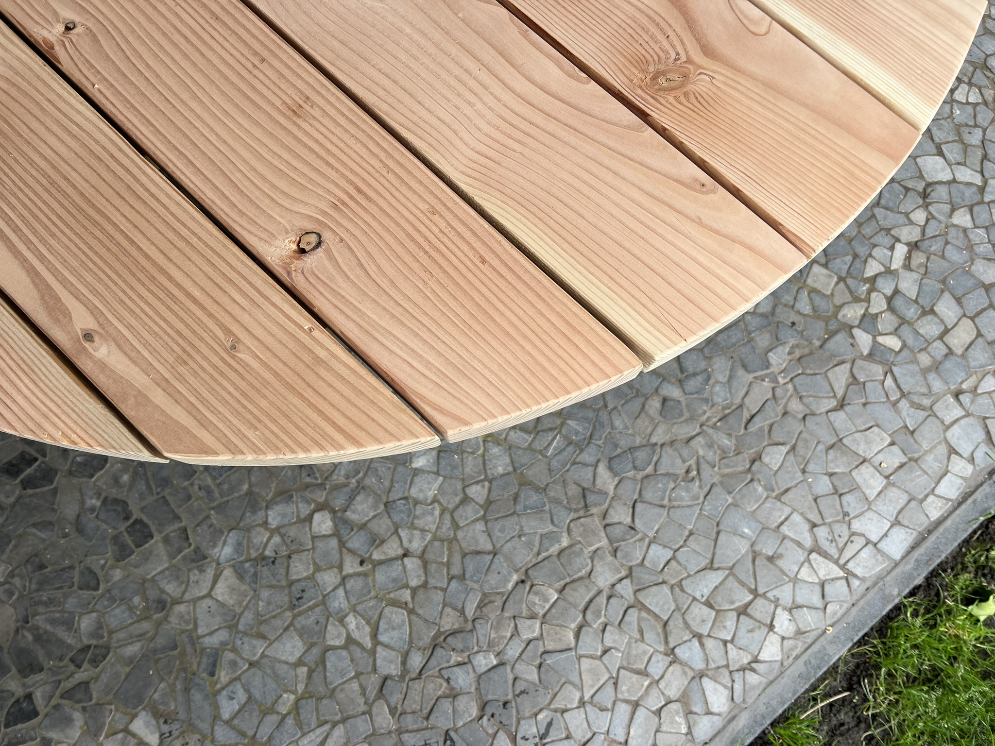 Zoek jij een douglas tuintafel, maar ben je op zoek naar iets anders dan een rechthoekige tafel? Dan is deze ronde tuintafel met stalen poot iets voor jou! Met een ronde tafel creeër je gelijk een gezellige sfeer in jouw tuin. Daarnaast is je tuintafel duurzaam; hij gaat 10-15 jaar mee! Een ander voordeel is dat een ronde tafel minder ruimte in beslag neemt dus ideaal om jouw ruimte optimaal te benutten! Kies zelf je onderstel en afmeting, van 4 tot 6 personen. Binnen 3 weken kan jij dan genieten van een prachtige tuintafel, handgemaakt uit onze werkplaats in Hoogeveen!