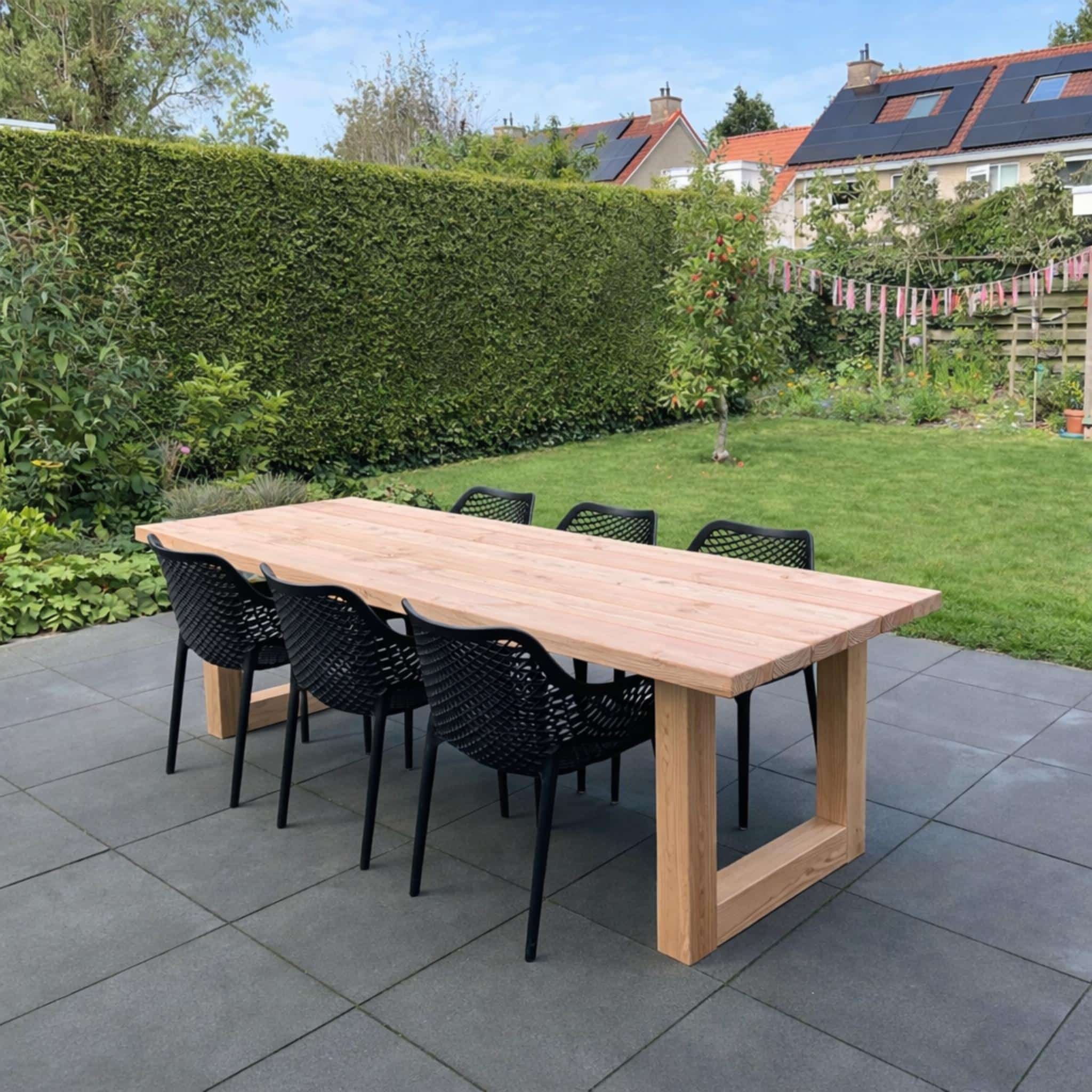 Op zoek naar een moderne en strakke uitstraling? Door het Douglas onderstel geeft deze tafel een strakke uitstraling in de tuin. Het tafelblad en de poten worden gemaakt van duurzaam Douglas hout. Twijfel je over de maat van de tafel? Klik hier voor meer informatie over welke afmeting tuintafel bij jou past. Kom je er niet uit? Neem gerust met ons contact op!