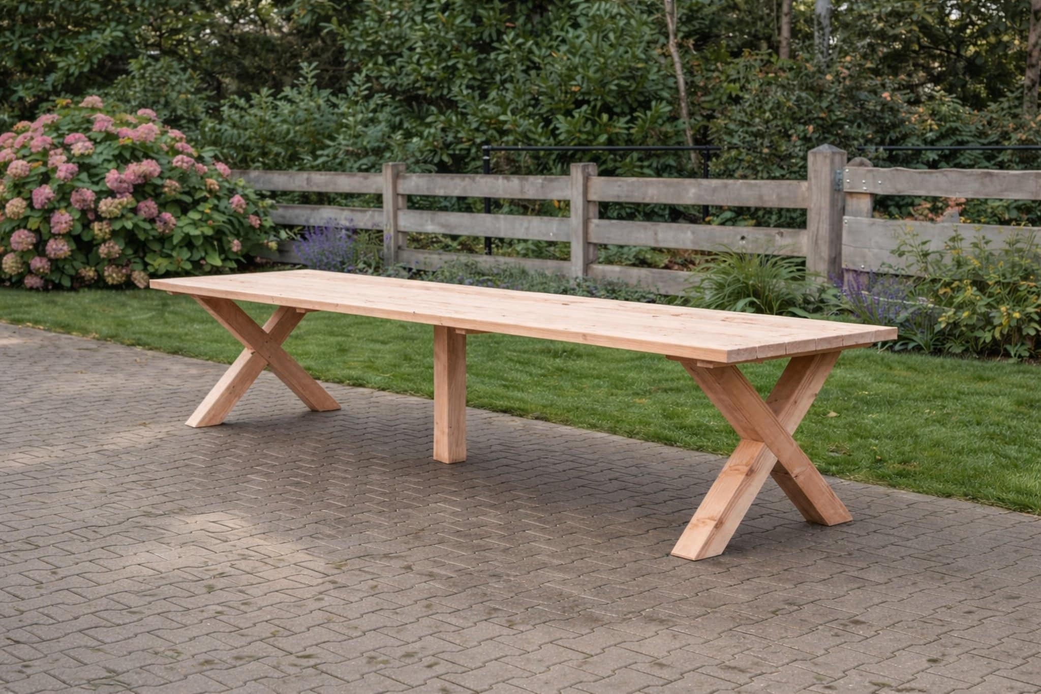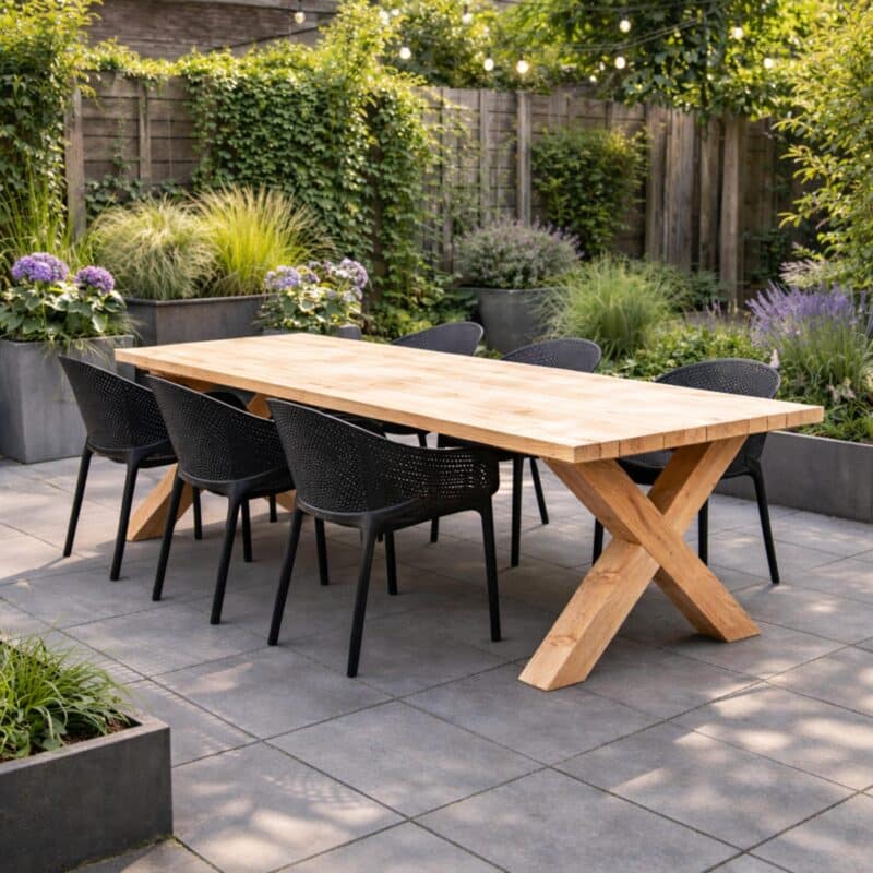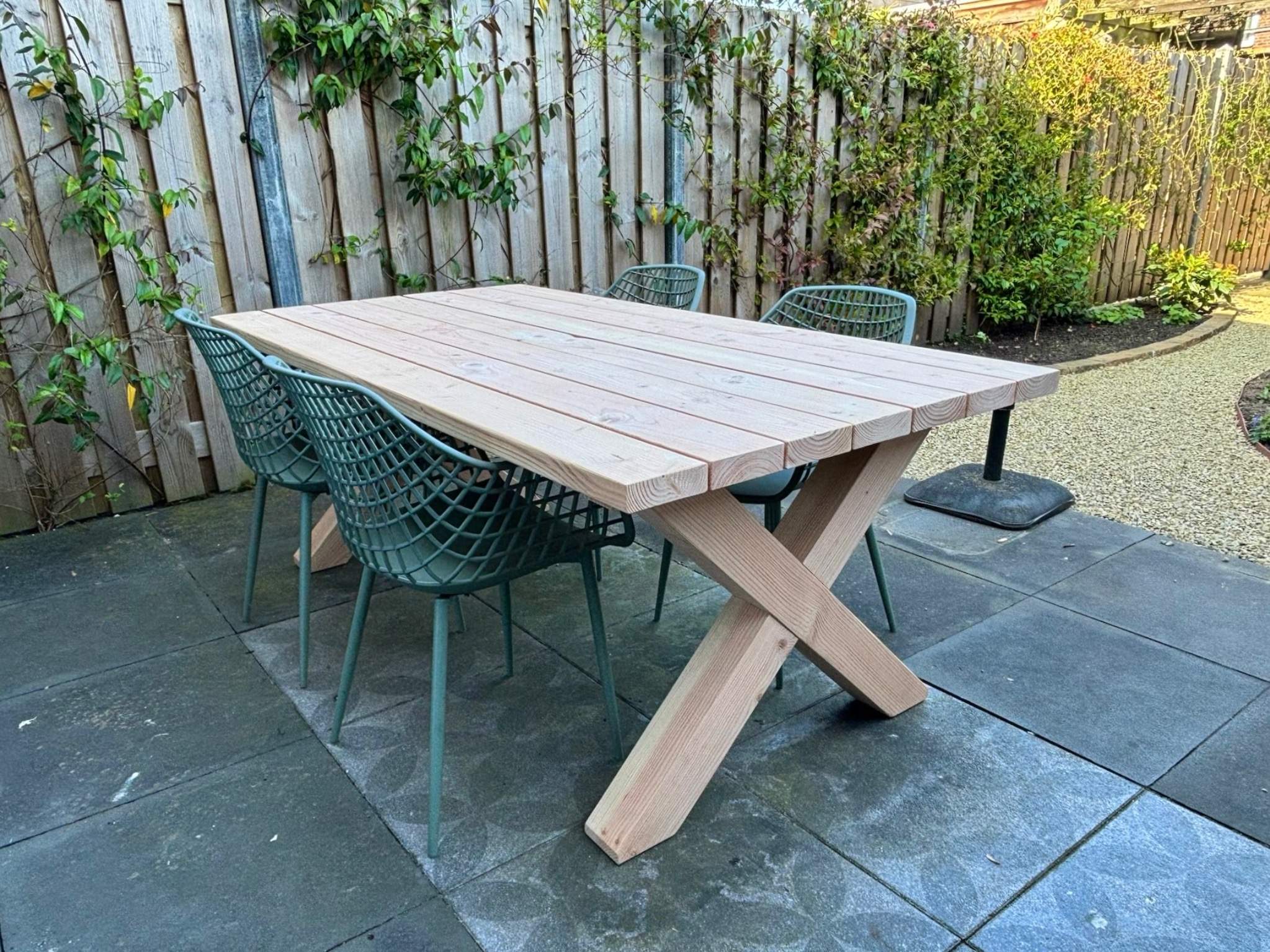 Op zoek naar een moderne maar ook natuurlijke tuintafel? Dan heb je met Tuintafel Xavier een perfect exemplaar. Het tafelblad en de poten worden gemaakt van duurzaam Douglas hout. Twijfel je over de maat van de tafel? Klik hier voor meer informatie over welke afmeting tuintafel bij jou past. Kom je er niet uit? Neem gerust met ons contact op!